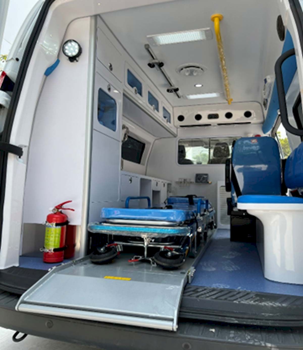 Với dung tích xi lanh 2.0L, động cơ thế hệ mới Ecoboost của Ford, có Turbo tăng áp nên xe có công suất cao, tăng tốc nhanh, đồng thời rất tiết kiệm nhiên liệu. Nội thất khoang bệnh nhân được sản xuất đồng bộ tại nhà máy xe chuyên dụng cấp cứu, có đầy đủ trang bị phục vụ các thiết bị cấp cứu hiện đại: hệ thống oxy âm tường, các đầu giắc nối cắm cho máy thở, hệ thống điện 220V, 12V phục vụ cho hoạt động các trang thiết bị y tế.